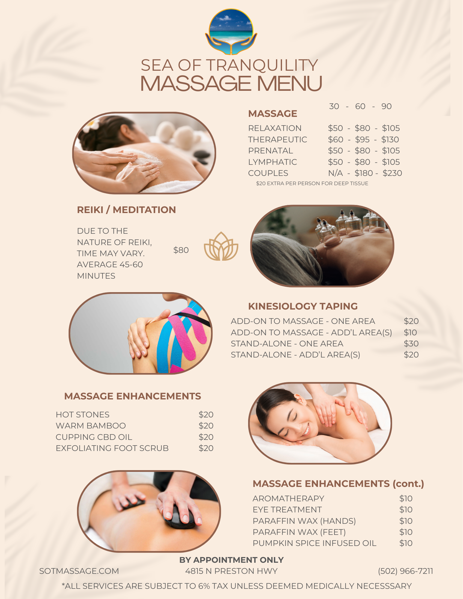 At Sea of Tranquility, our mission is to help every person who walks through our door to the fullest extent of our professional education and unique expertise. We listen and customize each and every session to our clients needs. Your health, wellness, and satisfaction are our primary focus.